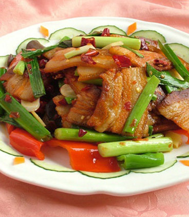 備注:回鍋肉是一種烹調(diào)豬肉的漢族傳統(tǒng)菜式,屬于川菜系。起源四川農(nóng)村地區(qū)[1]  。古代時(shí)期稱作油爆鍋;四川地區(qū)大部分家庭都能制作?;劐伻獾奶攸c(diǎn)是:口味獨(dú)特,色澤紅亮,肥而不膩,入口濃香。所謂回鍋,就是再次烹調(diào)的意思?;劐伻庠谠诖ú酥械牡匚皇欠浅V匾摹;劐伻庖恢北徽J(rèn)為是川菜之首,川菜之化身,提到川菜必然想到回鍋肉。它色香味俱全,顏色養(yǎng)眼,是下飯菜之首選。